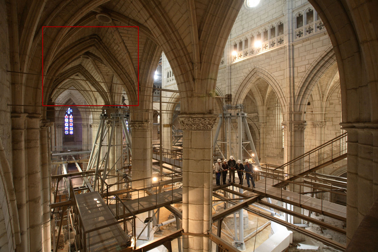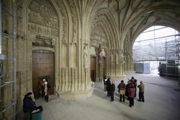 Para finalizar, me gustaría felicitar a los artífices del proyecto y a todos los restauradores que están interviniendo, por ser tan respetuosos con los criterios a seguir. El aprovechamiento de las nuevas tecnologías les ha permitido documentar cada uno de los rastros que el tiempo ha dejado en la catedral sin dañar en lo más mínimo ni un centímetro más. Tengo que decir que después de hacer la visita guiada a las obras, teniendo en cuenta que como restauradora me muestro muy crítica y siempre busco la vuelta a todo, no tengo absolutamente nada que objetar sobre el proceso. Incluso la chica que nos guió por el laberinto de pasarelas, Loinaz, supo responder a todas y cada una de las preguntas -muchas y rebuscadas- que le hice sobre el proceso de restauración estructural, los vitrales y el pórtico, sin ser experta en restauración, realmente se ha preparado increíblemente bien para hacer su trabajo. Así da gusto, de verdad.