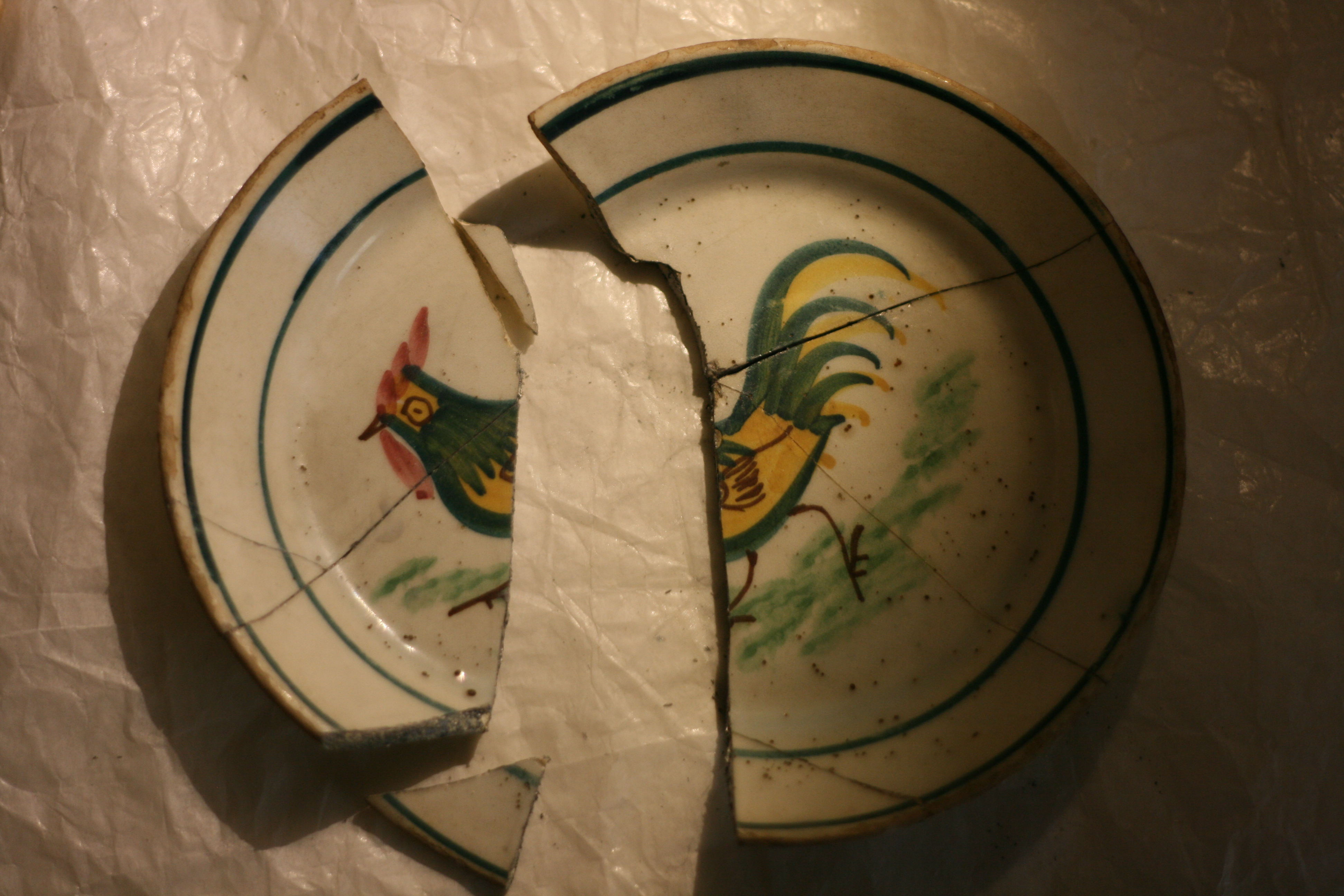 La semana pasada devolvimos a su dueño este plato cerámico que fue encontrado por su padre mientras luchaba durante la Guerra Civil. Obviamente, es un objeto de poco valor económico pero con una carga sentimental muy fuerte y necesitaba una restauración.