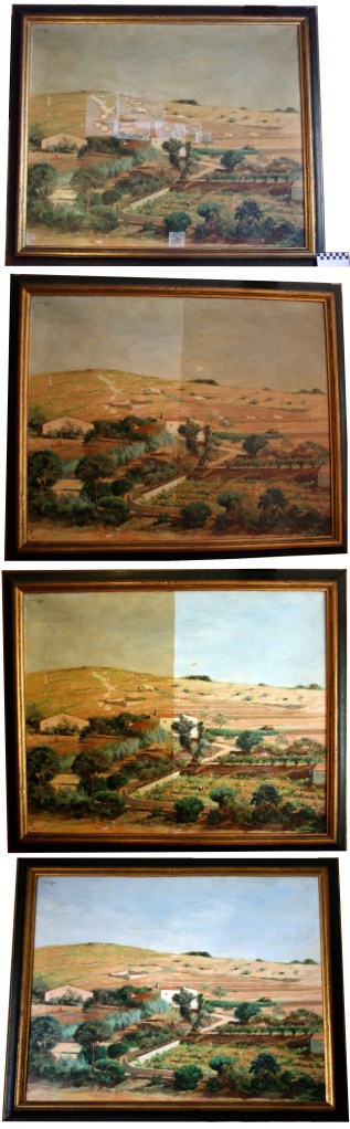 La reintegración de las pérdidas de policromía se realizó con la técnica de puntillismo que permite integrar las lagunas en el conjunto, pero es suficientemente discernible para evitar un falso histórico. ¡Y ya podéis ver el resultado!